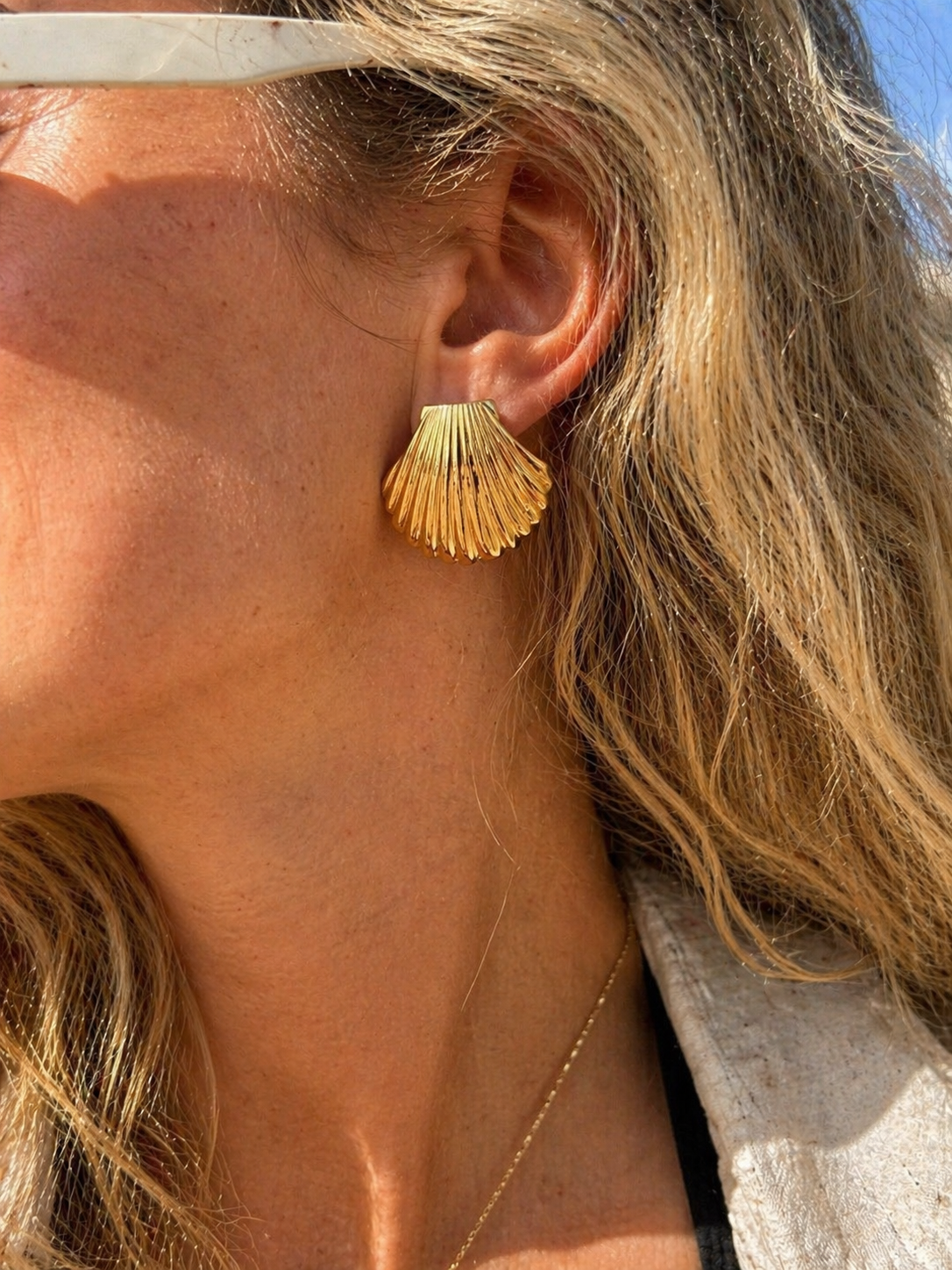 Évoquant la délicatesse des rivages ensoleillés, ces boucles d'oreilles en acier inoxydable doré, finement sculptées en forme de coquillages, se posent délicatement sur l'oreille, offrant une touche d'élégance estivale. Leur éclat subtil et leur design raffiné se marient harmonieusement à une tenue chic, élevant ainsi votre allure avec une sophistication indéniable.