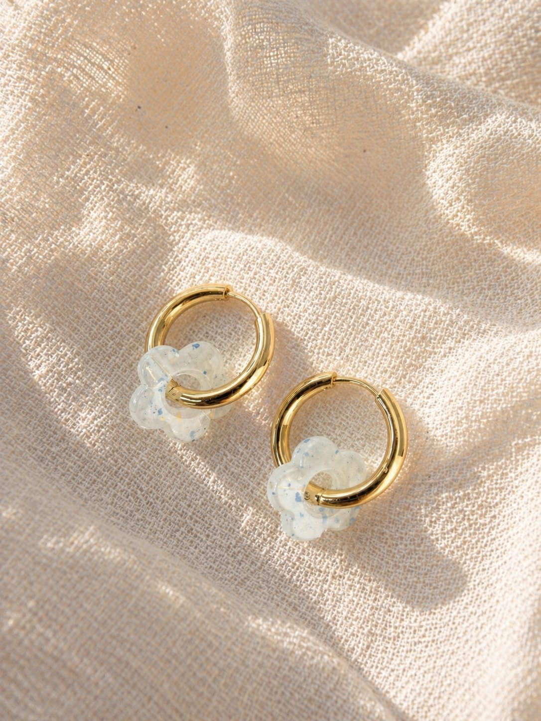 Laissez-vous séduire par ces boucles d'oreilles en forme de fleurs, œuvre délicate en résine, harmonieusement associée à une boucle en acier inoxydable. Chaque pièce évoque la beauté éphémère de la nature, transcendant le simple bijou pour devenir un symbole de raffinement et d'élégance intemporelle.