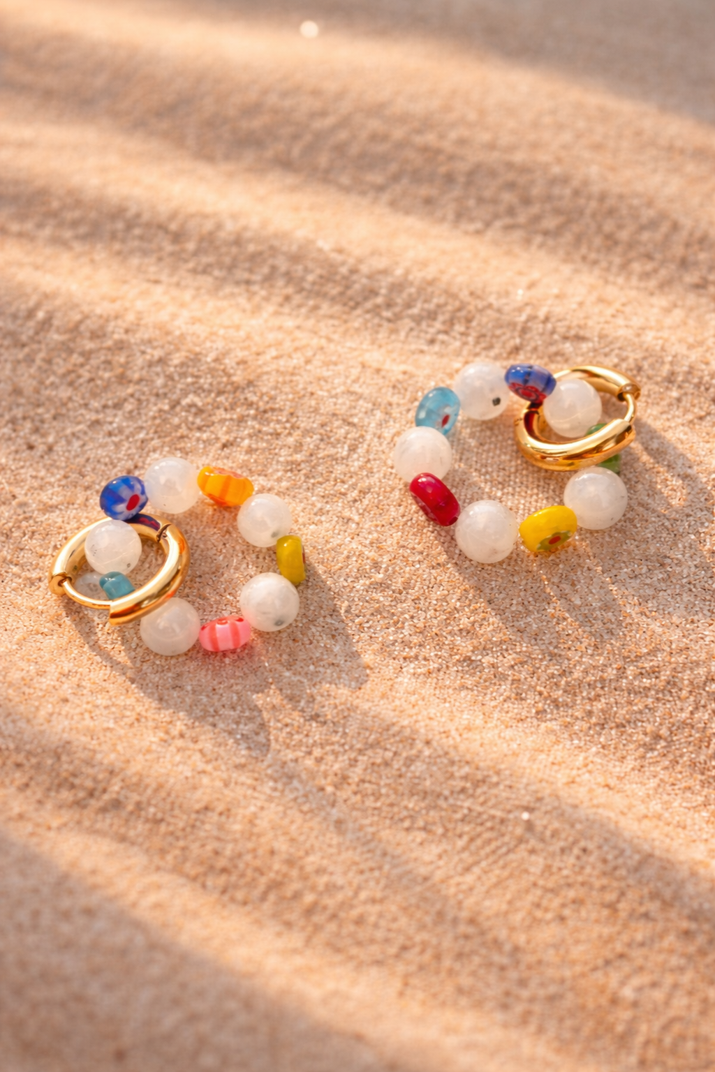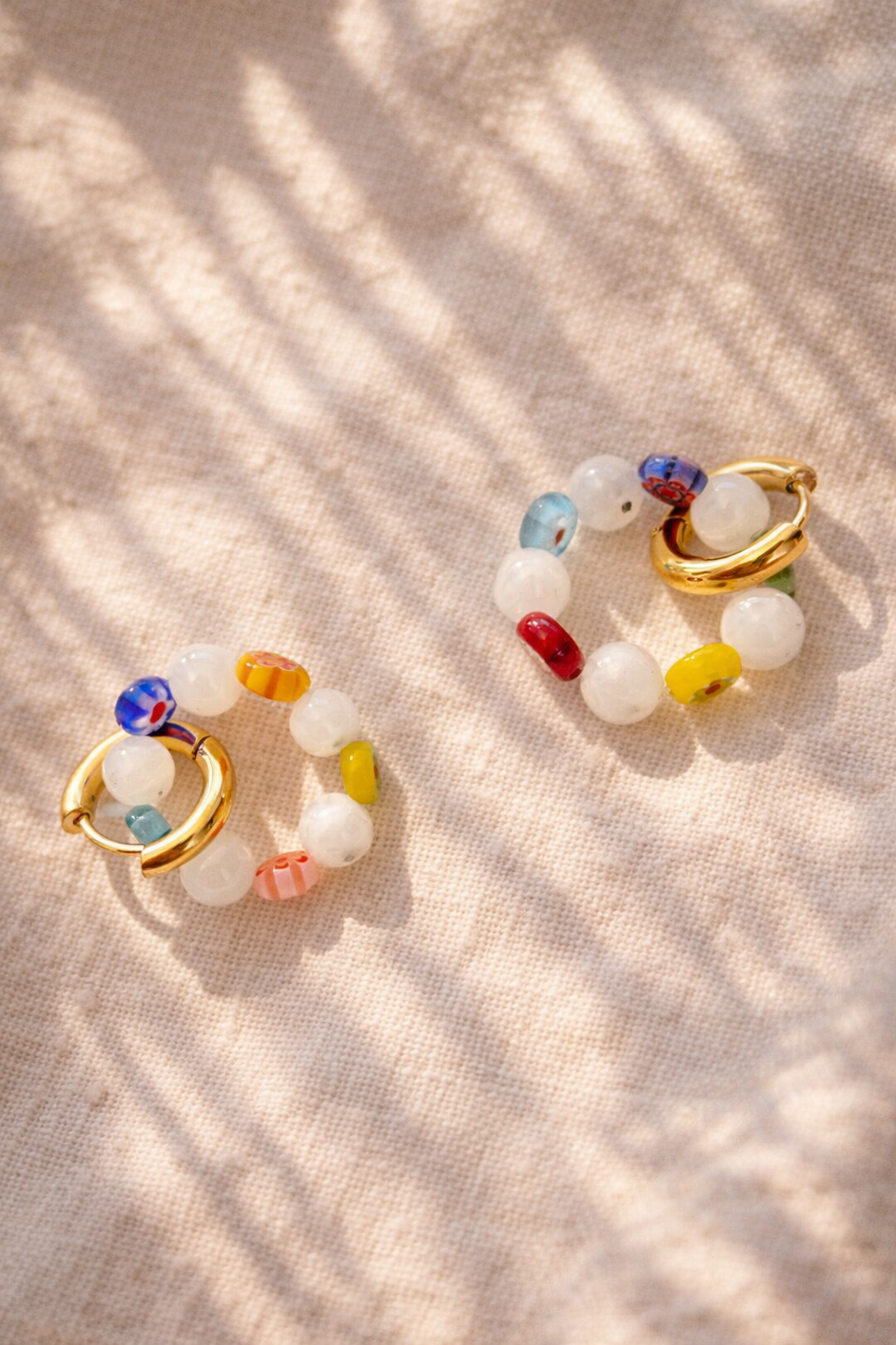 Hand painted glass beads and white jade beads